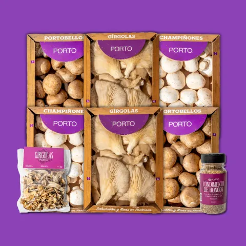 Segunda vez que compro un combo con hongos porto, en el medio por practicidad compré en el super, pero es mucha mejor calidad la compra con ellos directo.. El tamaño de las girgolas no las conseguis en otro lado, los portobellos tienen un grosor hermoso. Me los como solos así "crudos"!! Y tanto los hongos disecados como el sazonador de champis, son un mil, te realzan cualquier salsa!! Sin dudas volveré a comprar y a planificar mejor mi semana para no tener que caer en los del super!